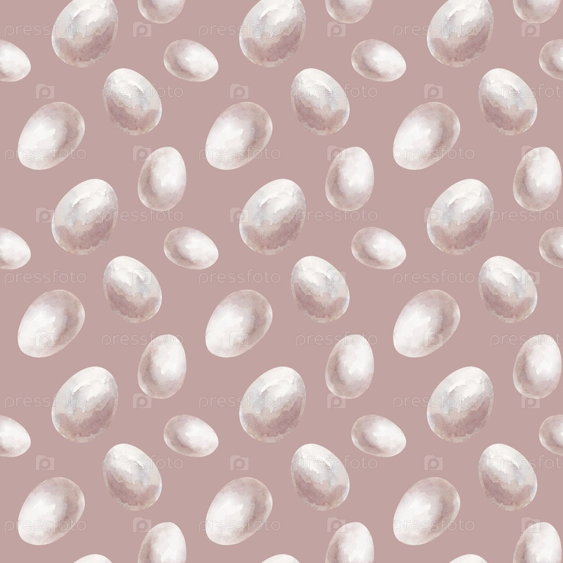 Бесшовный рисунок с белыми яйцами на светло-коричневом фоне. Шаблон акварели с сельскохозяйственными продуктами для использования в сельском хозяйстве. Для упаковки и печати