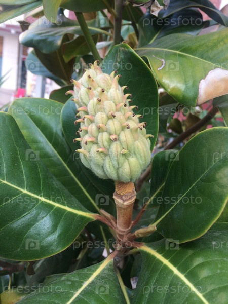 Незрелый плод Magnolia grandiflora, также известный как Южная Магнолия
