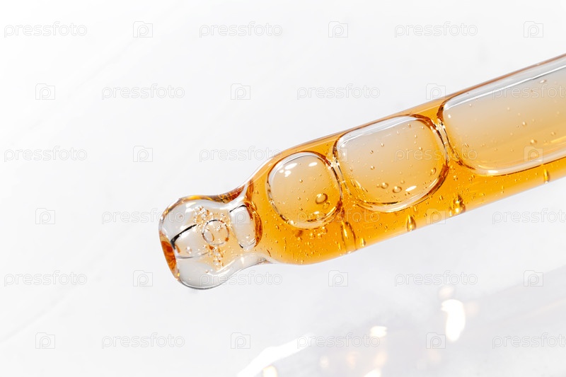 Косметическая пипетка с витаминной сывороткой или эфирным маслом на светлом фоне