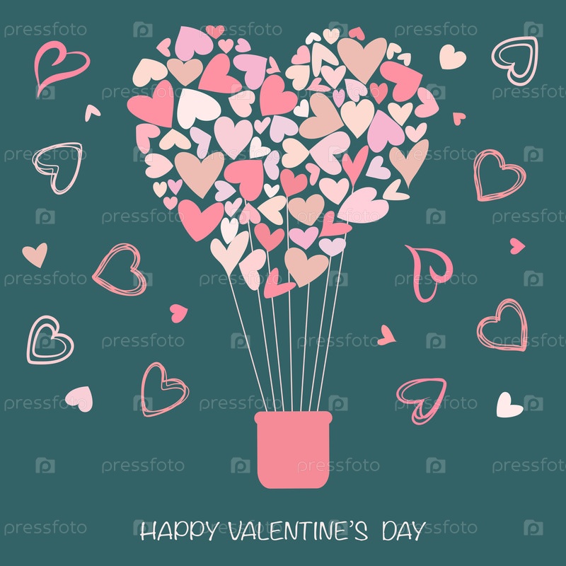 Карточка на День Святого Валентина.Современный дизайн с шаром в форме сердца, выполненным из маленьких многоцветных сердечек.Плоский стиль векторной иллюстрации