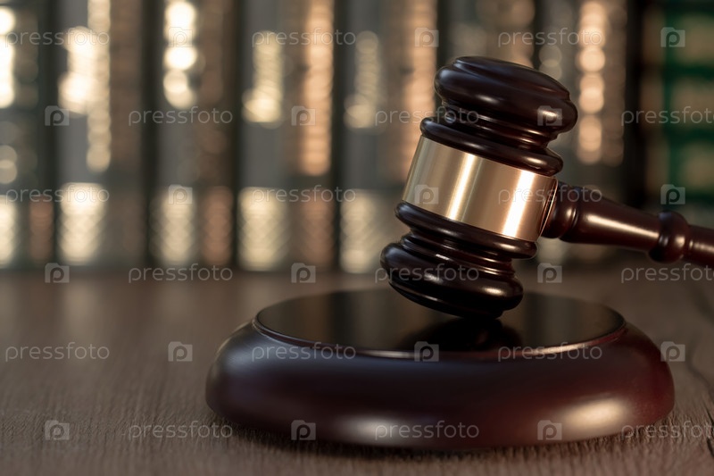 Судейский молоток на фоне близкого плана книги