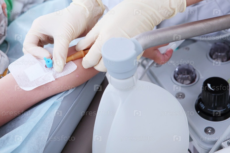 В руку ребенка вводится внутривенный катетер.Ребенок находится под анестезией.Концепция здоровья и медицины
