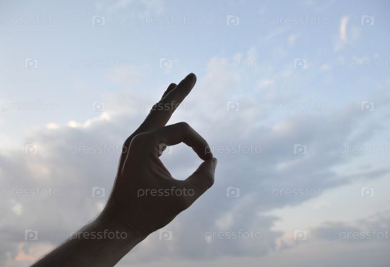 Силуэт руки против неба на закате показывает символ с пальцами. сообщения или жесты. тишина и красота в природе