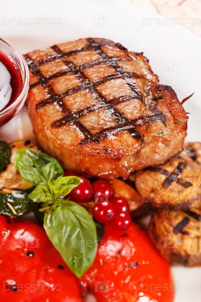 Стейк на гриле с овощами