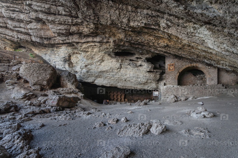 Скалистая пещера с каменными арками на тропе Голицына в Новом Свете