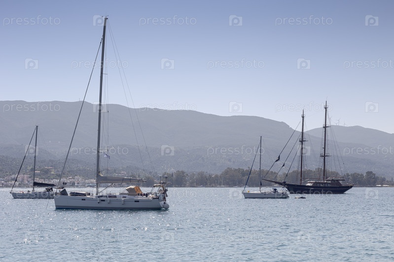 Вид на прогулку и яхты острова Парос (Греция) весенним вечером