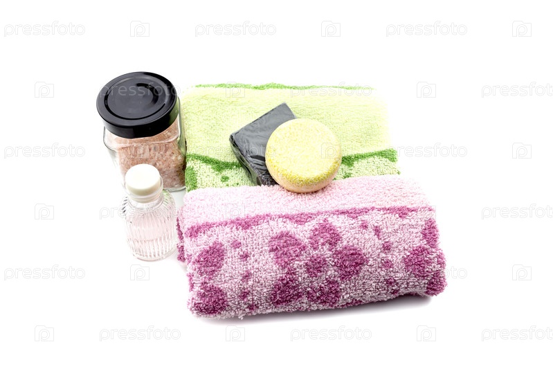 Закрытие косметических и купальных аксессуаров на белом фоне