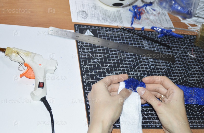 Рождественские игрушки. голубая ткань и горячий клей. домашняя мастерская