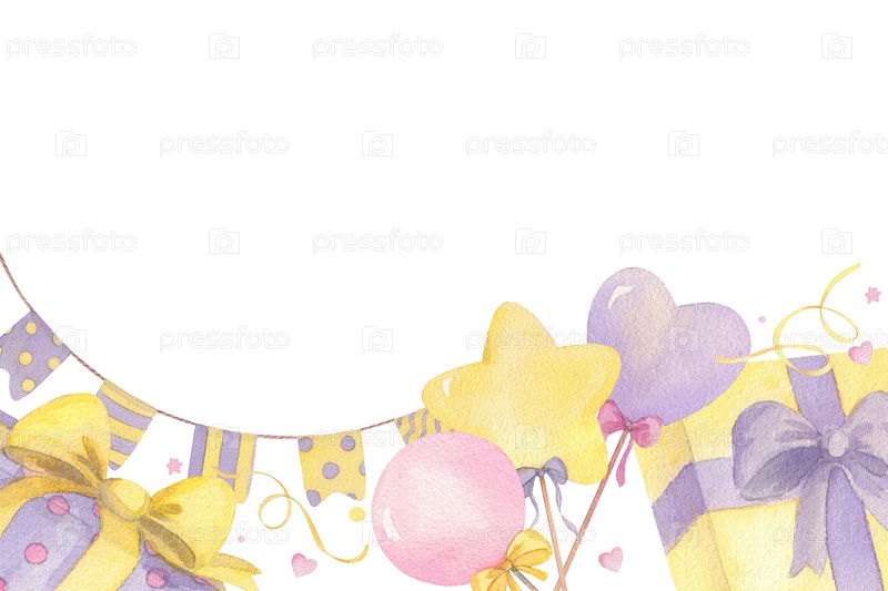 Ограждение торта на день рождения, гирлянда из флагов, серпентина, подарки, конфетти и леденецы. для упаковочной бумаги, поздравительных открыток, украшений и иллюстраций