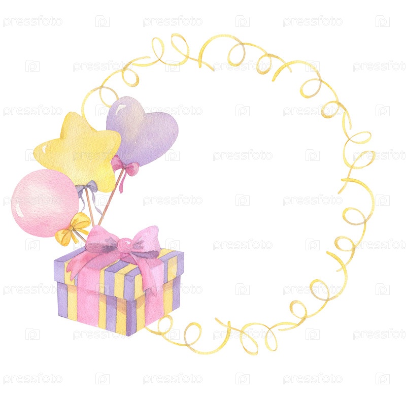 венок из серпентина, коробки для подарков и цилиндры. иллюстрация акварельных красок ручной работы. на упаковочную бумагу, поздравительные открытки, украшения и иллюстрации
