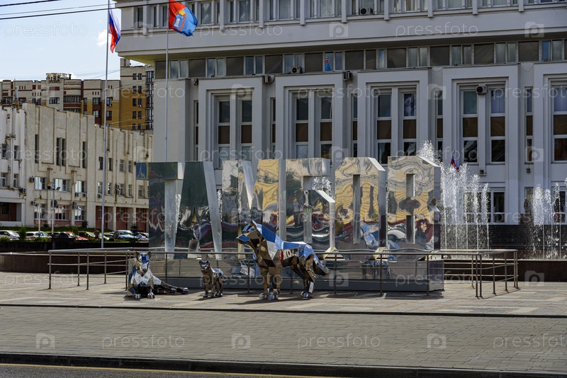 Зеркальные скульптуры тамбовских волков, зеркальное название города Тамбова и водные объекты в городской инсталляции