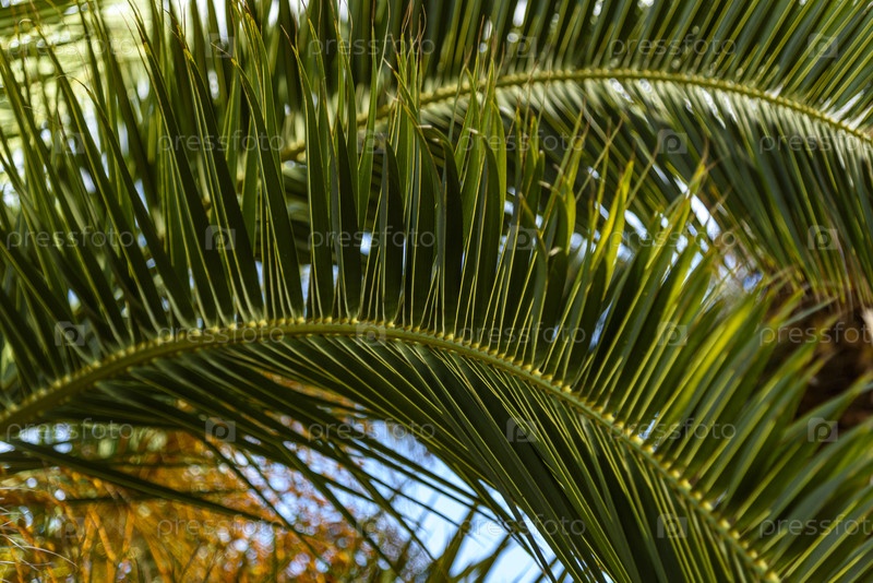 Роскошные зеленые пальмовые листья создают естественную текстуру фона