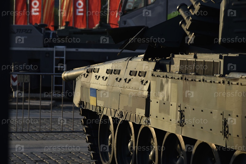 Трофей уничтоженных украинских боевых машин пехоты, представленный в парке Победы в Москве