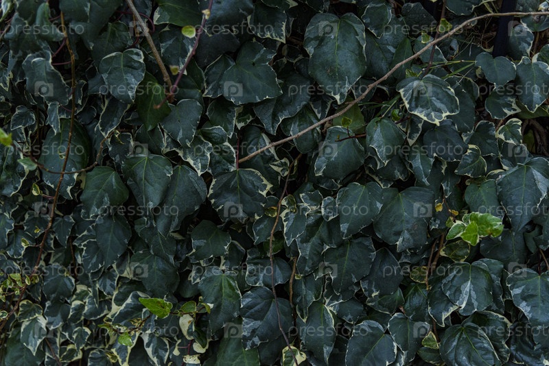 Роскошные зеленые листья плюща образуют плотный естественный фон