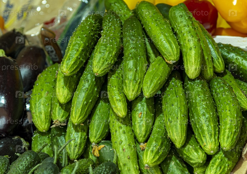 Свежие хрустящие огурцы, приготовленные для продажи на местном рынке