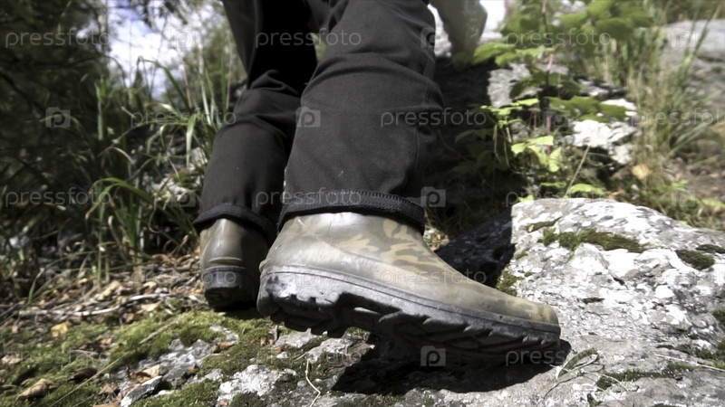 Мужчина делает шаги, чтобы подняться на гору в солнечный день