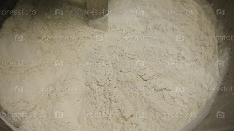 Смешивание муки для теста в большом миксере. Видеозаписи из фотобанка. Большие промышленные испытательные смесители для смешивания больших объемов теста