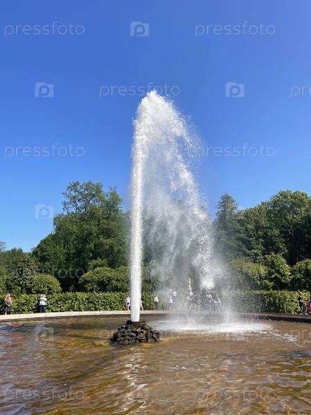15 июня 2025 года - Санкт-Петербург, Россия: Гигантский фонтанный поток в парке Петергоф в солнечный день