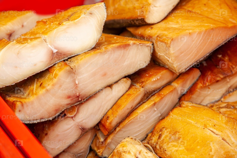 Продажа копченой камчатской рыбы. морепродукты Дальнего Востока, натуральная копченная рыба - лосось inconna на городском рождественском рынке