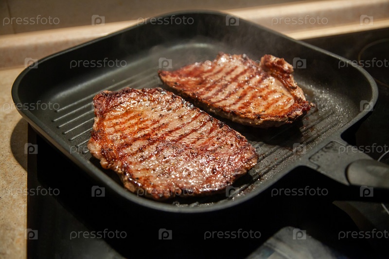 Печеный минутный стейк из мраморной говядины на гриле закрывается