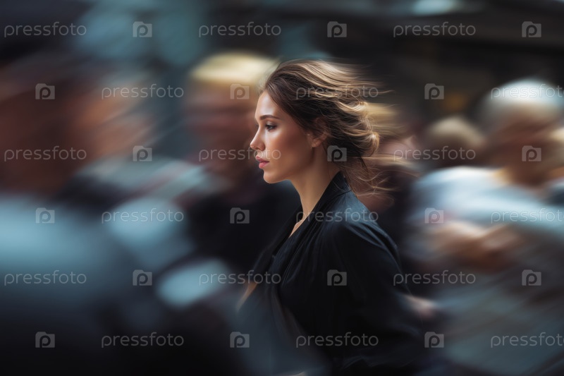 Размытое движение женщины, идущей по городу. размытый фон