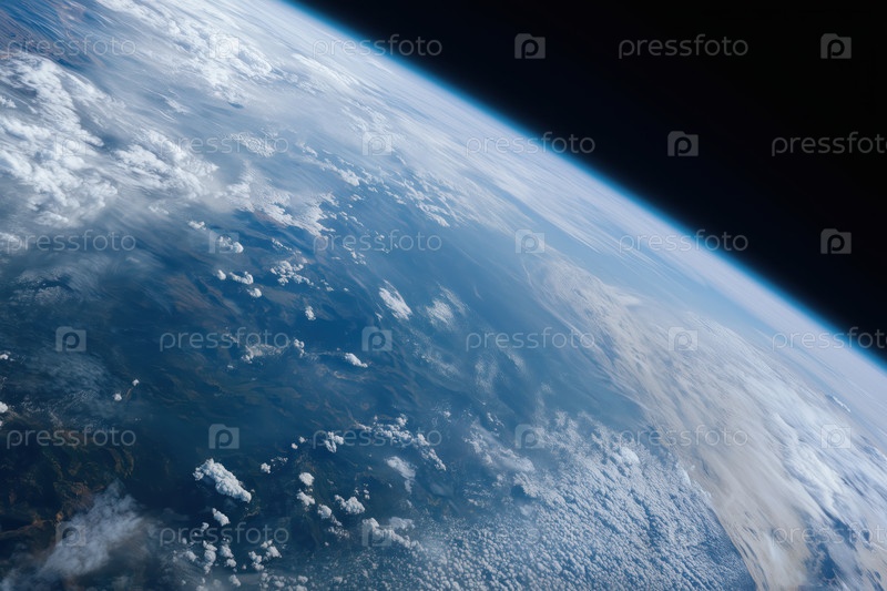 Вид Земли из космоса с атмосферой и облаками в солнечный день