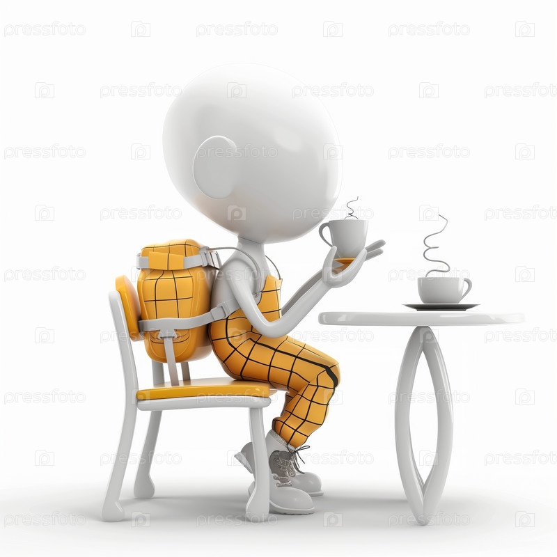 Стикмен пьет чай за столом с чайником и чашей
