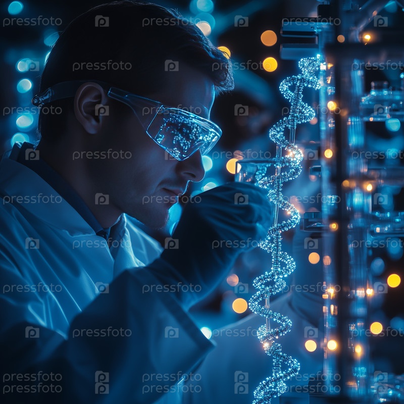 Ученые анализируют светящуюся структуру ДНК в лаборатории