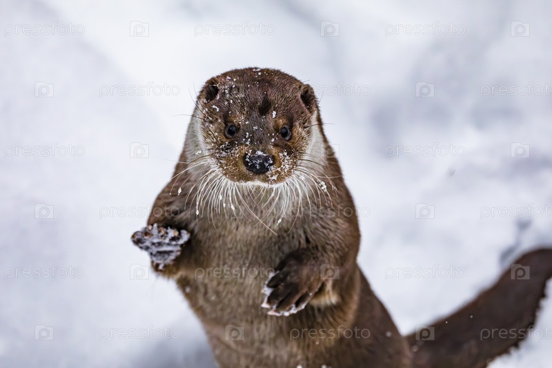 Выдра в снегу зимой