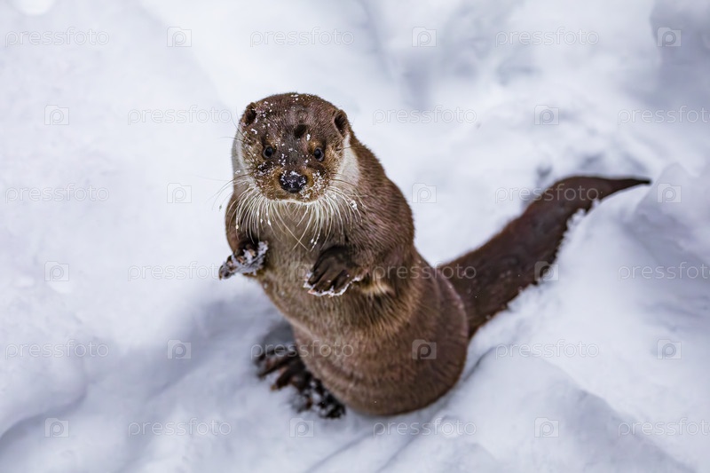 Выдра в снегу зимой