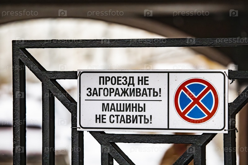Железные ворота с табличкой 'Не блокируйте проход, не помещайте машины' зимой