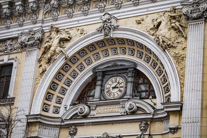Древние часы на фасаде многоквартирного дома В.И. Фирсанова на Неглинной улице