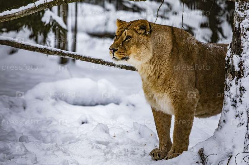 Львица в снежном лесу