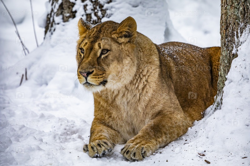 Львица в снежном лесу