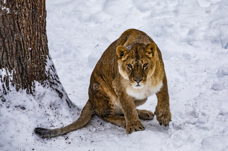 Львица в снежном лесу