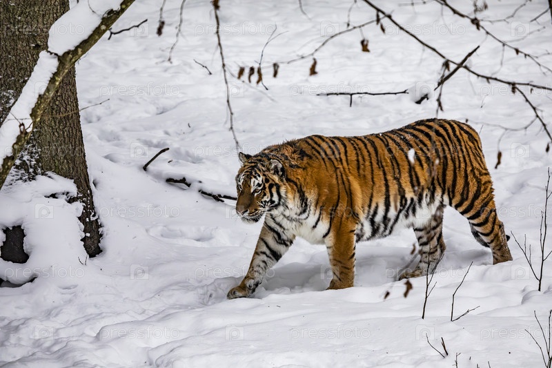 Амурский тигр в снежном лесу