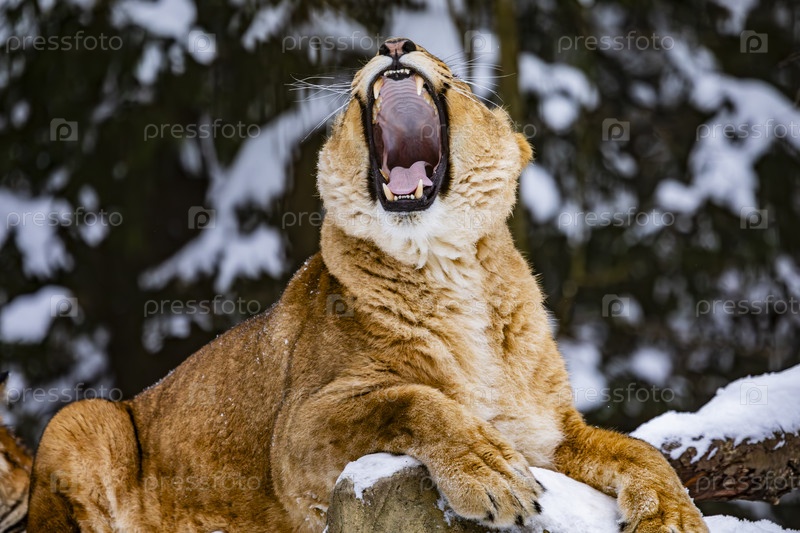 Львица в снежном лесу
