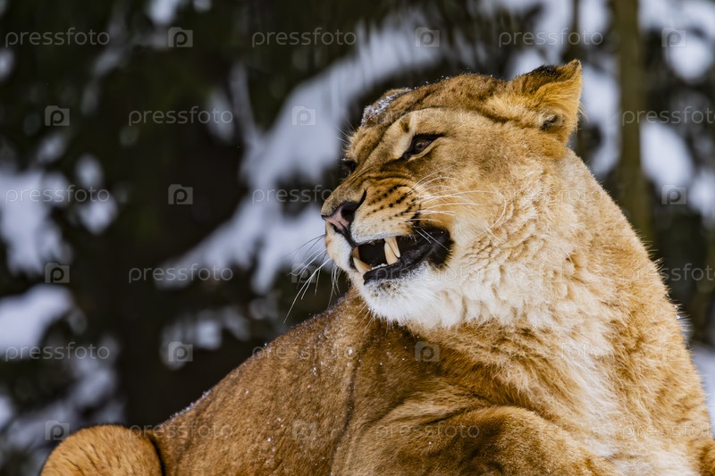 Львица в снежном лесу