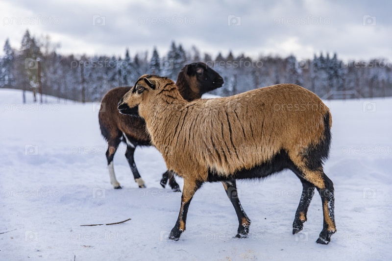 Домой Камерунские овцы на зимней прогулке