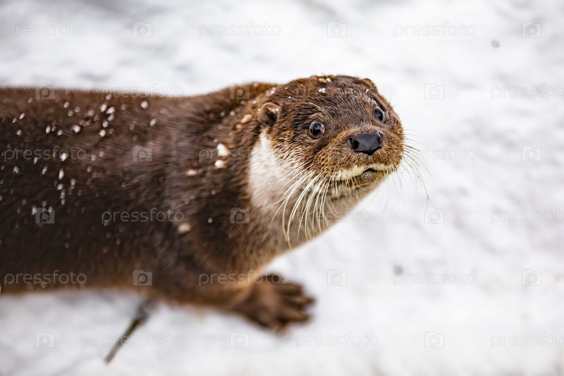 Выдра в снегу зимой