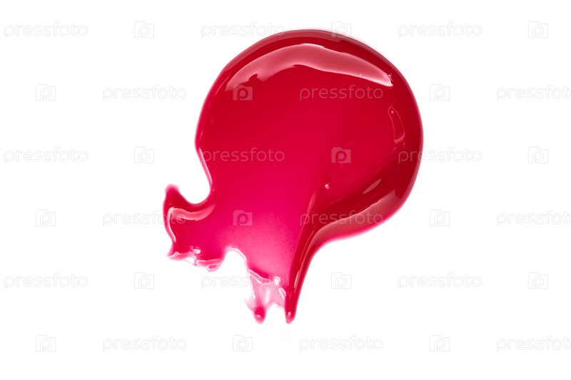 Текстура розового блеска губ подчеркивается на белом фоне.Косметический продукт Smear.Пример продукта Makeup Swatch