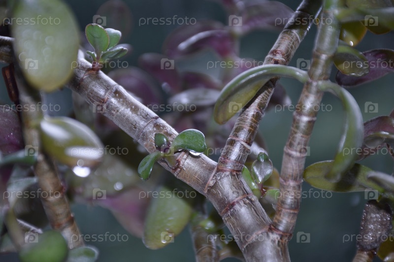 Красула овата, дерево денег, долларное дерево - растение нефрита возле окна крупный снимок. горшочное растение на подоконнике. Вид на сочные зеленые листья. Сочный в домашнем саду
