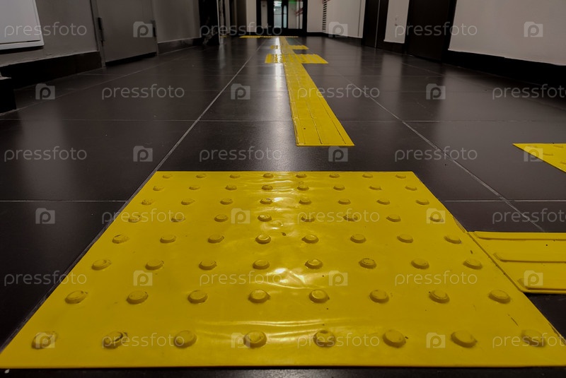 Желтые тактильные плитки на полу