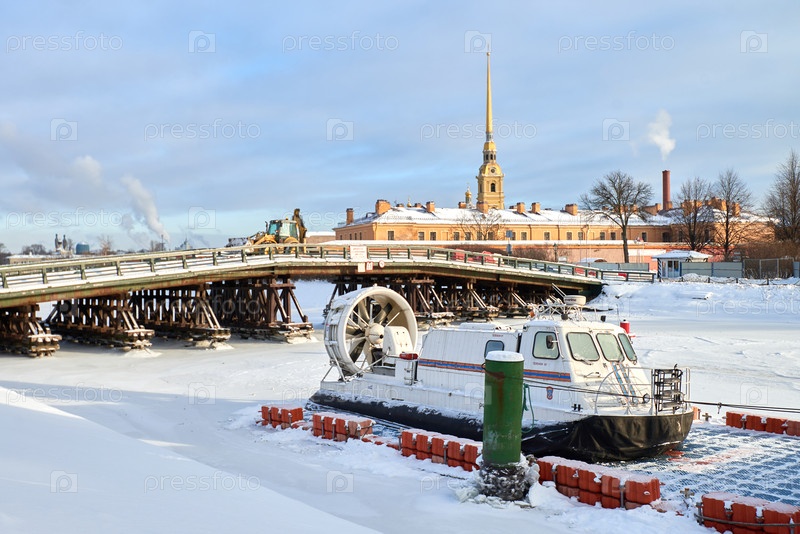 Крепость Петра и Павла, мост Кронверк, зимний пейзаж