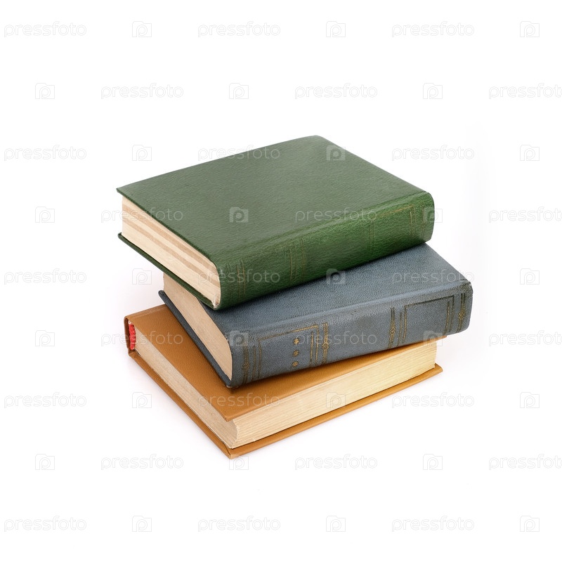 Куча книг в цветных обложках с белыми листами, изолированными на белом фоне