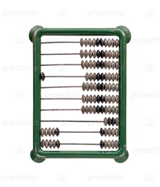 Металлический ретро-абакус, выделенный на белом фоне