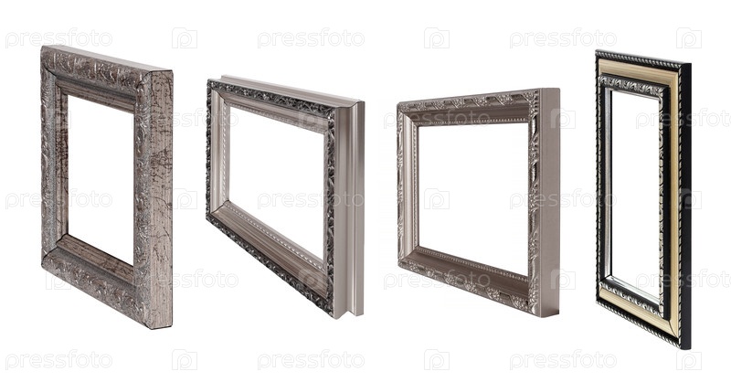 Серебряная рама для картин, зеркал или фотографий в будущем изолирована на белом фоне