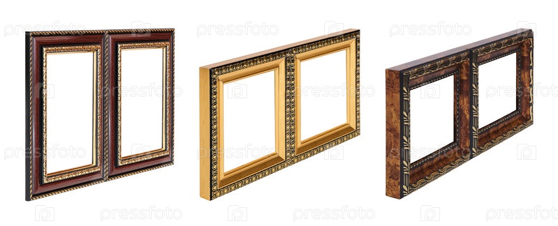 Деревянная двойная рама для картин, зеркал или фотографий в будущем изолирована на белом фоне