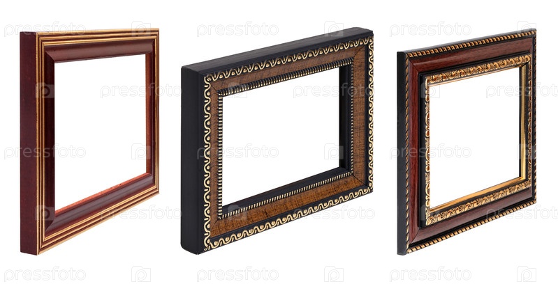 Деревянная рама для картин, зеркал или фотографий в будущем изолирована на белом фоне