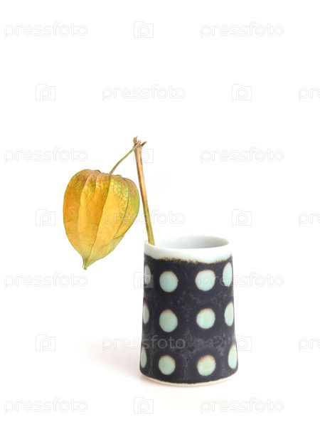 Крошечная керамическая ваза с одним китайским фонарем, вырезка готова. очень высокое разрешение